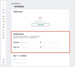 販売開始日時と販売終了日時を選択して、商品を販売する期間を設定します。