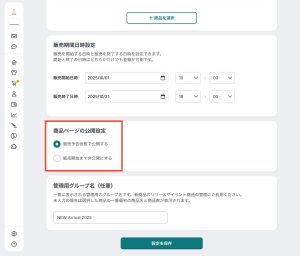 販売開始までの間、商品を非公開の状態で登録しておくことで、新商品ページを決まった日時に公開することができます。