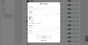 商品の検索機能がアップデートされました。これまでは商品名・説明のテキスト検索のみでしたが、「絞り込み」検索を利用することにより、「ステータス(公開/非公開)」、「商品タイプ(定期便/デジタルコンテンツ)」、「カテゴリ(カテゴリ App利用時)」で絞り込み検索をすることができます。