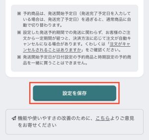 必要な情報の入力が終わったら、「設定を保存する」ボタンを押して、商品を登録してください。