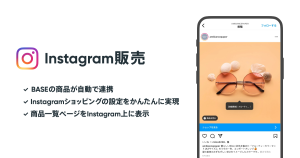 「Instagram販売 App」では、「BASE」の商品と<Instagram>を連携させることができます。