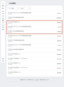 売上からお支払いまでのお金の流れは、「お金管理」画面の最近の入出金履歴から確認ができるようになっています。