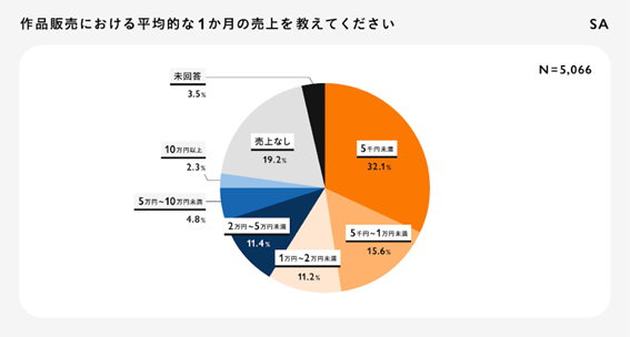 - 80%近くの人がハンドメイド作家活動で収入を得ていて、1万円以上の収入を得ている人も約30%。