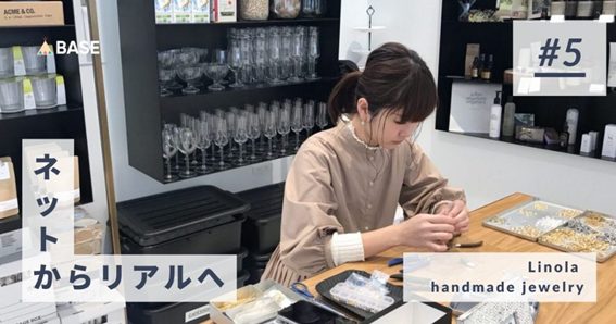 「Linola handmade jewelry」では、リアルとネットを柔軟に行き来する運営スタイルで、顧客との交流を軸に売上を伸ばしています。たとえばBASEの販促支援サービスを活用し、渋谷モディ内にあるBASEのポップアップスペース「SHIBUYA BASE」に出店。ネットショップでファンになってくれたお客様と交流を深められるうえ、商品の魅力を直接お客様に伝えられるので、新規ファン獲得の機会にもなっています。