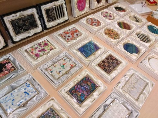 建築学科出身のオーナーが、建築業界の分業制に疑問を感じて、一から十まで自分で手がけるものづくりを志向するようになりました。そこで、両親の会社が持つ技術を活かした「螺鈿アート」という伝統技術に着目。自らのブランド「Print creative」としてハンドメイド雑貨を制作・販売する道を選びました。
