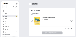 ここまで出来たら、今度はBASEの管理画面に戻ります。先ほど「未対応」となっていた該当商品をクリックして、発注済み処理を行います。