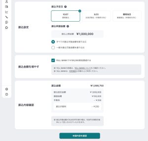 振込申請の画面から、同時に資金調達(YELL BANK)もご利用いただけるようになりました。