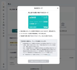 「利用規約」にご同意いただける場合はチェックを入れ、「同意してBASEカードを発行する」を押す