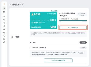 「お金管理画面」> BASEカード「カードを作る」