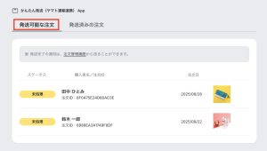 商品に注文が入ったら、Appの「発送可能な注文一覧」を押してください。