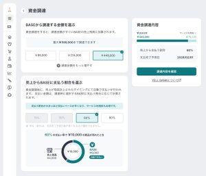 ※BASEの[お金管理画面]>[YELL BANK]>[調達金額を選ぶ]から確認できます。