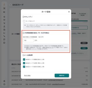 BASEカードページ > カード設定 > ご利用限度額の設定/月