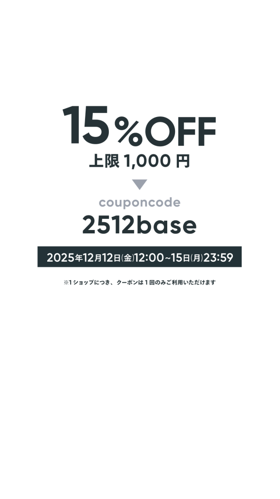 ・15%OFFクーポン(上限1,000円) クーポンコード:2512base