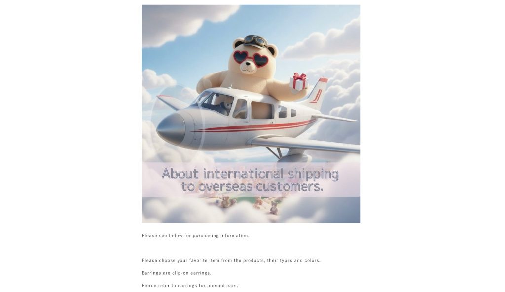 アクセサリー特有の言語の違いによる誤解(例:「ピアス」は海外では “earrings”、「イヤリング」は”clip-on earrings”)を避けるため、ていねいに説明しています。