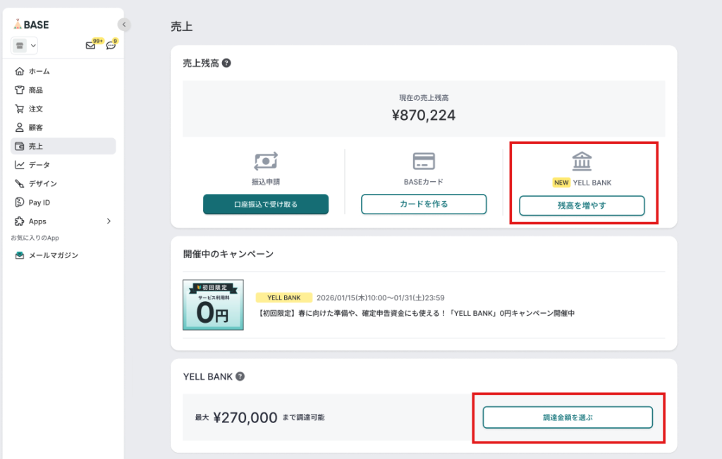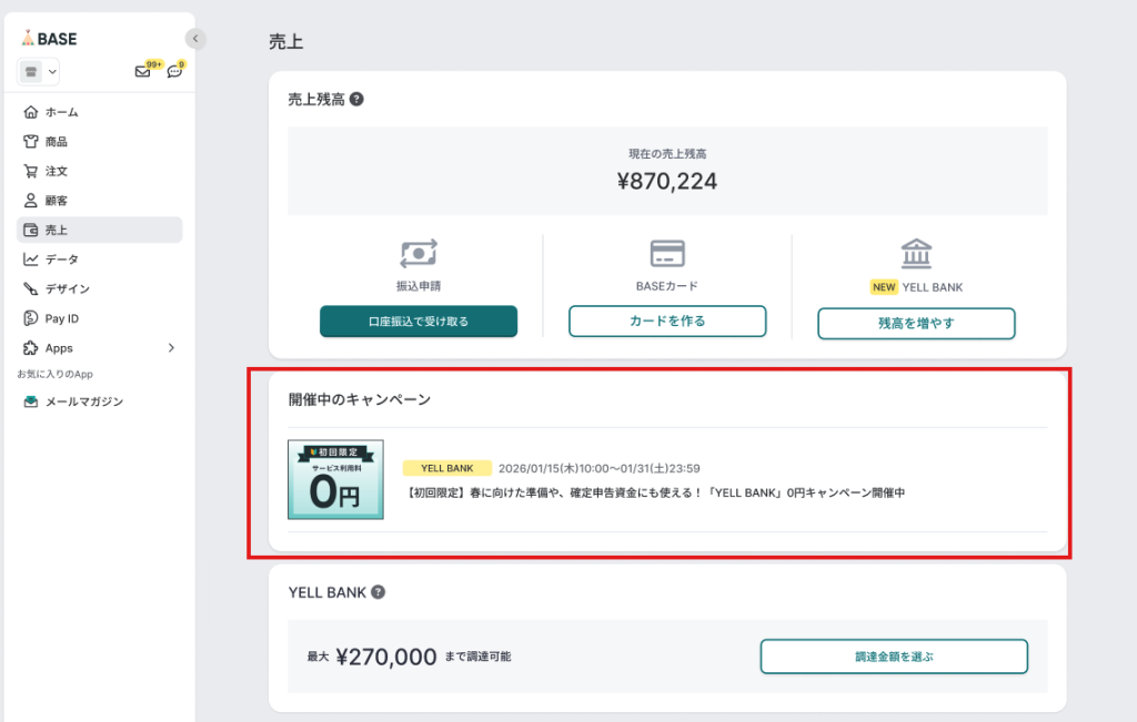 このたび、BASEが提供する資金調達サービス「YELL BANK」では、はじめてご利用されるショップオーナーを対象に、サービス利用料が無料になるキャンペーンを開催いたします。