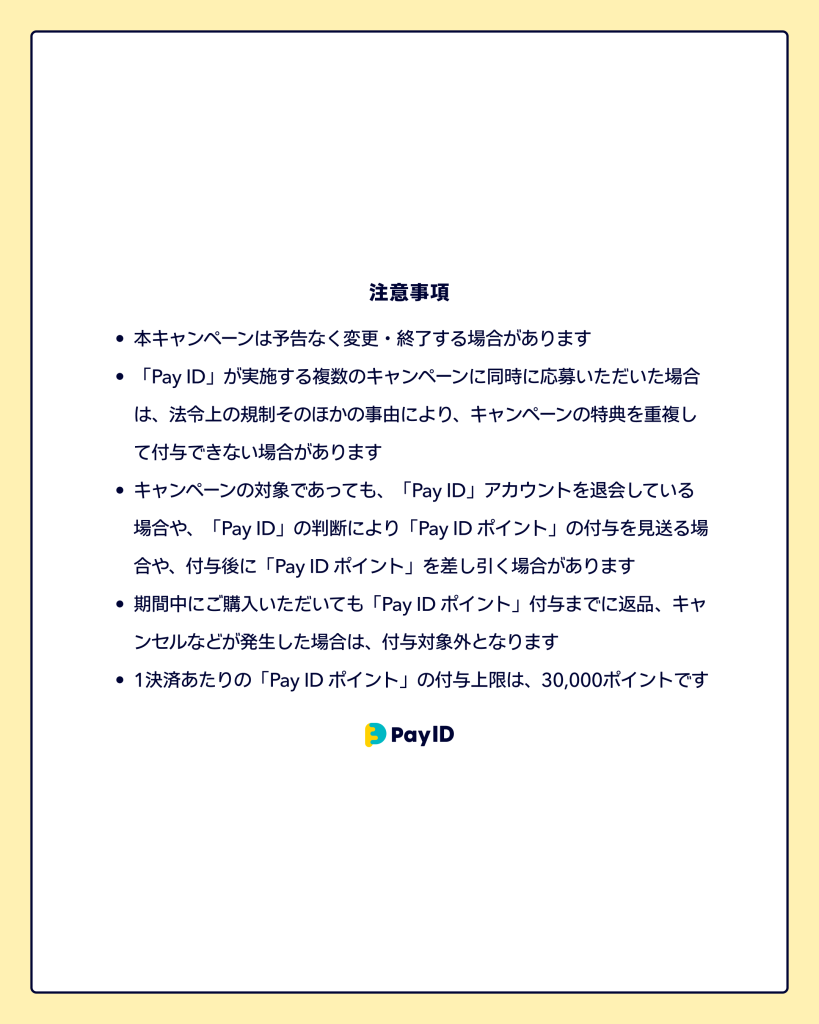 - 【キャンペーン参加の必須条件】「Pay IDアプリ」へのショップの掲載を、ONにしてください