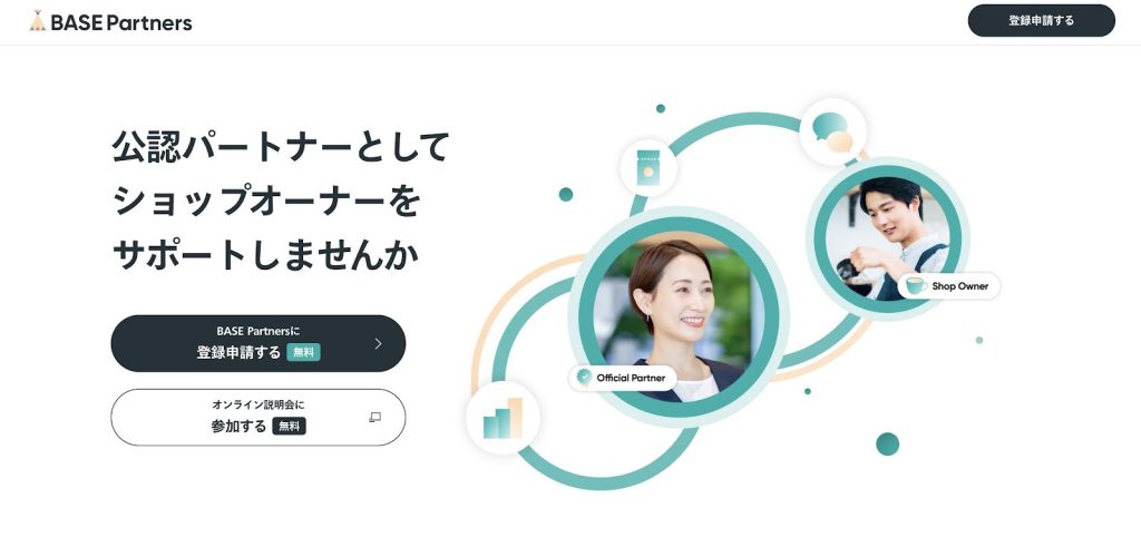 ネットショップ作成サービス「BASE」には、ショップ運営者を支援する公式パートナープログラム「BASE Partners」があり、BASEが認定したパートナーが、デザイン制作、マーケティング、運営代行などショップ運営を幅広くサポートしてくれます。