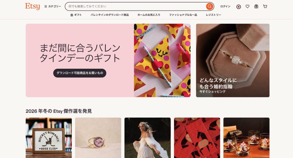 Etsyは、ハンドメイドやヴィンテージ品、クラフト資材に特化した国際的なマーケットプレイスです。独自性や作家性のある商品が評価されやすく、大量生産品との差別化を図りたいクリエイターに支持されています。