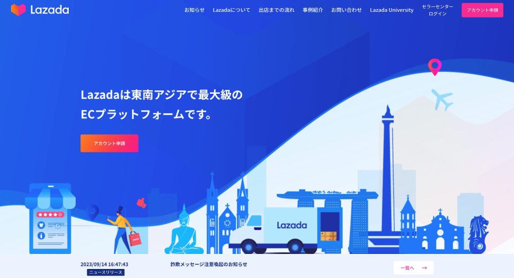 Lazadaはアリババグループ傘下で、Shopeeと並んで東南アジアを代表する越境ECモールです。マレーシア、タイ、フィリピン、インドネシアなどでシェアが高く、アリババの物流・決済インフラを活用できるのが大きな強み。