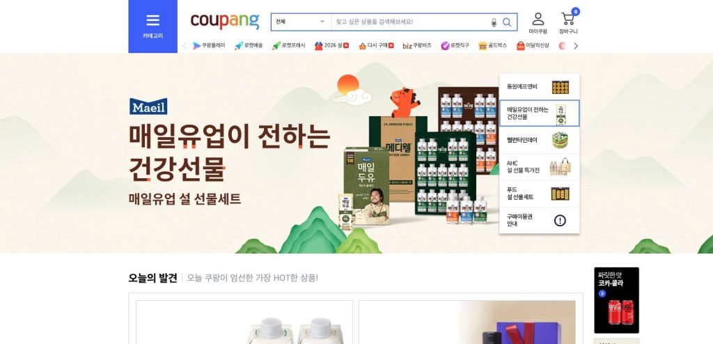 Coupangは、韓国最大級のECプラットフォームで「韓国のAmazon」とも呼ばれています。自社配送サービス「ロケット配送」で即日〜翌日配送が可能で、ユーザーからの信頼が高いのが特徴です。