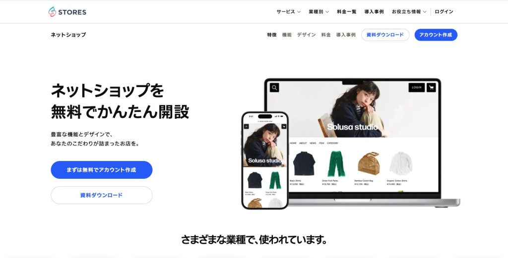 STORESは、デザイン性に優れたテンプレートや操作の簡単さで人気のあるネットショップ作成サービスです。英語表記への切り替えが可能で、海外からの閲覧にも対応しています。