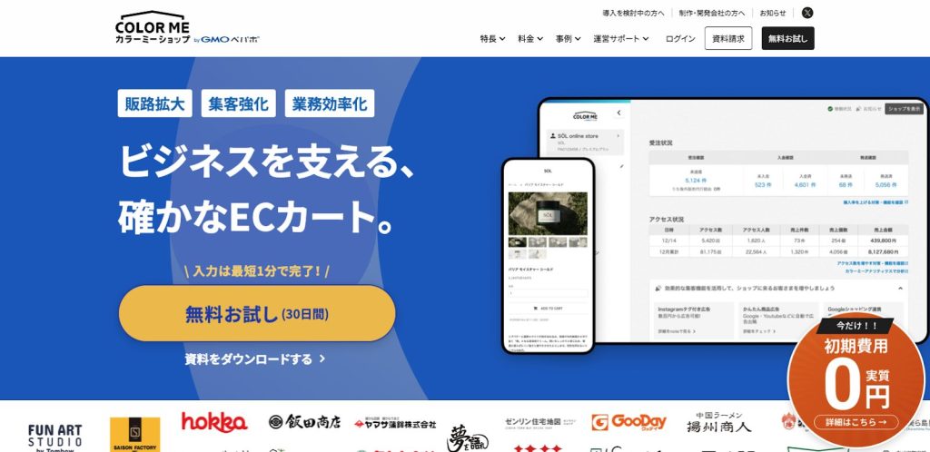 | 代表的なサービス | ・BASE ・Shopify ・STORES ・カラーミーショップ ・Cafe24 |