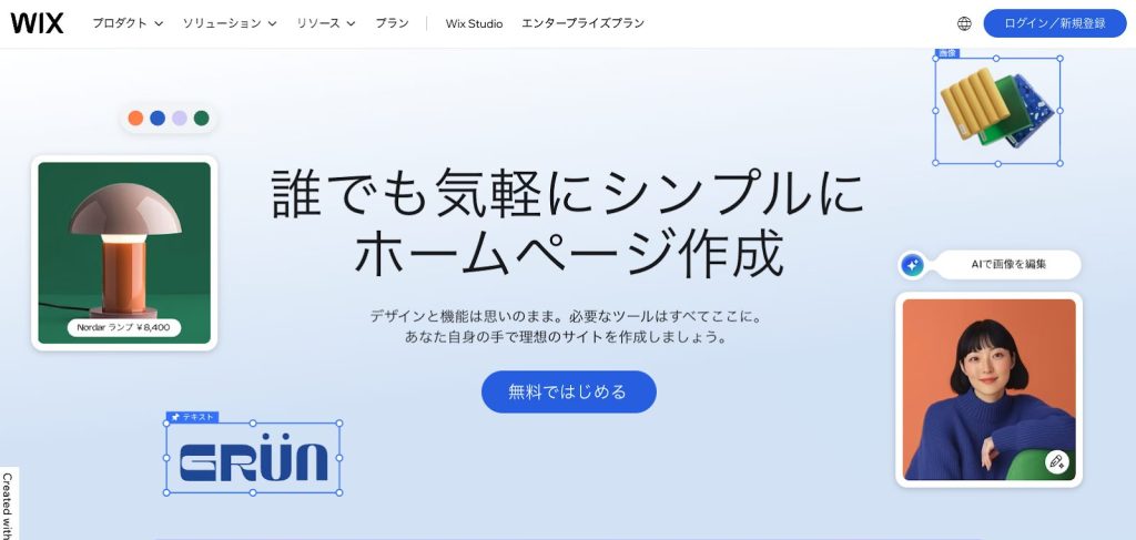 Wixは世界190ヶ国以上で利用されているイスラエル発のWebサイト作成ツールで、日本語サポートも完備しています。ドラッグ&ドロップによる直感的な操作で高品質なサイトが作れるため、ブランドの世界観を重視したショップ構築に適しています。