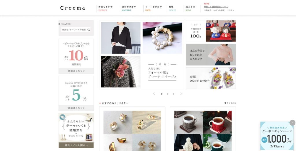 またCreemaが開催する海外向けイベントやプロモーションに参加することもできるので、海外展開を意識した作家にとっては足がかりとなるプラットフォームといえるでしょう。