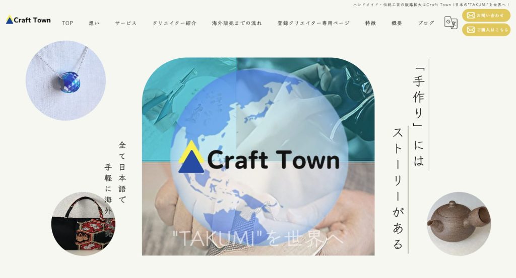 Craft Townは、作品に込めた想いや作家の背景に重きを置くマーケットプレイスです。海外販売にも対応しており、作品のストーリーやこだわりを海外ユーザーにも丁寧に届けられます。