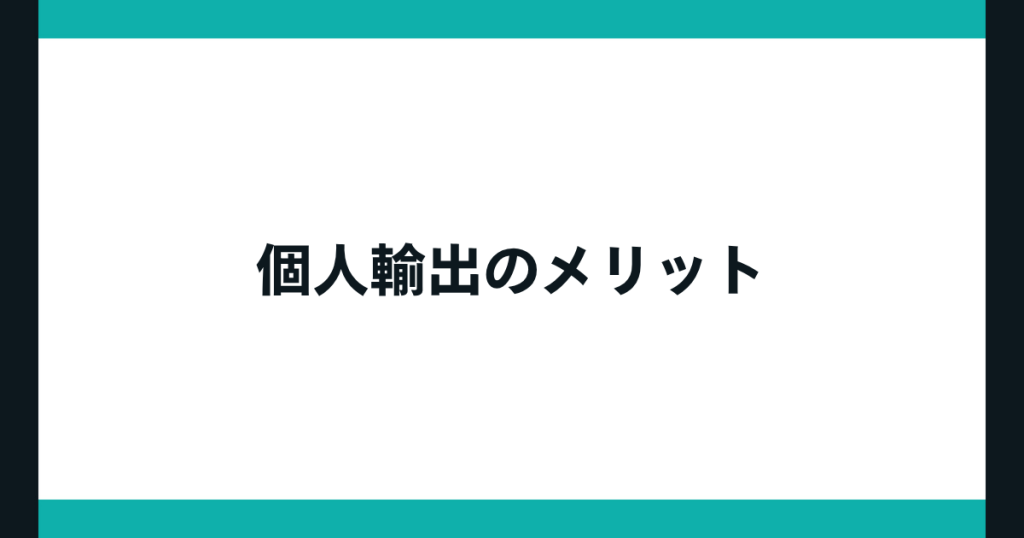 個人輸出では少量から販売をはじめられるため、大量仕入れや大量の在庫は必要なく、副業や個人レベルでも取り組みやすいのが魅力です。