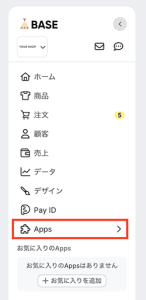 BASE Appsの一覧が掲載されたページには、管理画面内にあるメニューからいつでもアクセスできます。