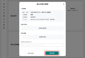 3. 内容を確認し、「振込申請する」をクリック