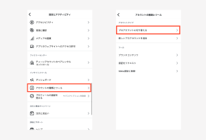 - オプション内の「設定」にある「アカウント」をタップしてから、「他アプリへのシェア」をタップします。