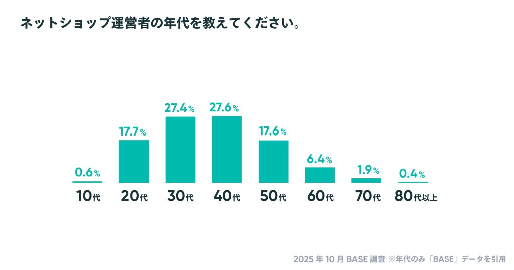 ・ネットショップ運営者の年代を教えてください。(年代のみ「BASE」データを引用)