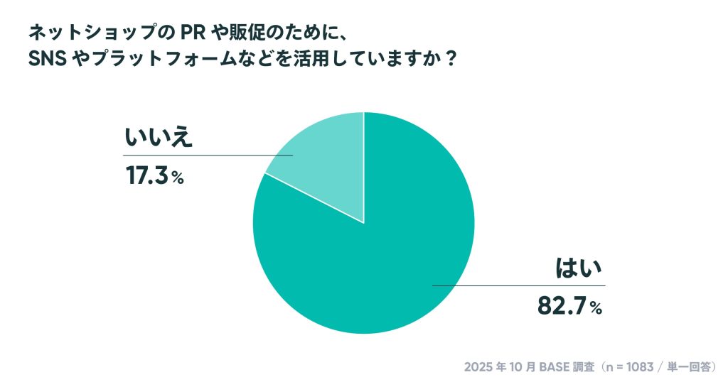 ネットショップのPRや集客・販促のためにSNSや動画プラットフォームを活用するショップは、82.7%とこれまでの調査と同じ高い水準を保っており、D2Cのパートナーとして欠かせない存在感を示しています。