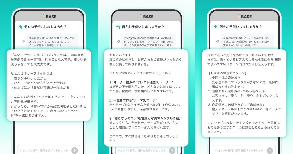 今回の「BASE AI」は、ショップ運営を管理画面上で相談できる、新しい対話型インターフェースの第一歩です。